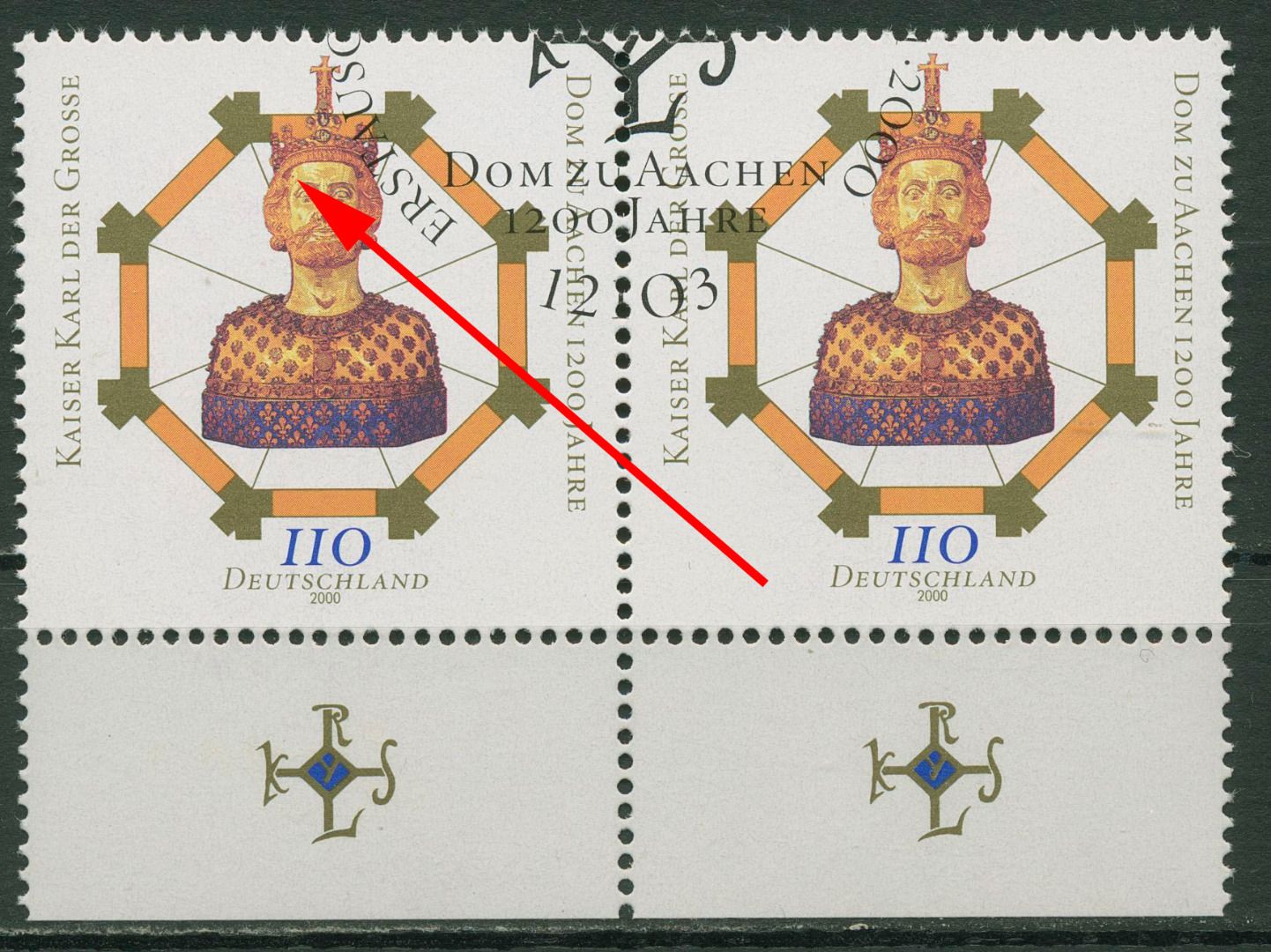 Bund 2000 Karl der Große, Aachener Dom mit Plattenfehler 2088 I gestempelt