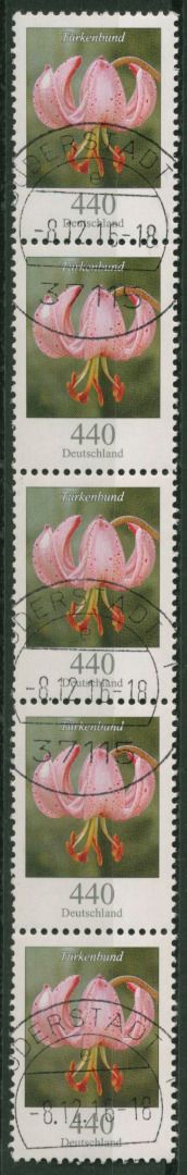 Bund 2014 Blumen aus 100er-Rolle 3118 5er-Streifen mit Nr. mit TOP-Stempel