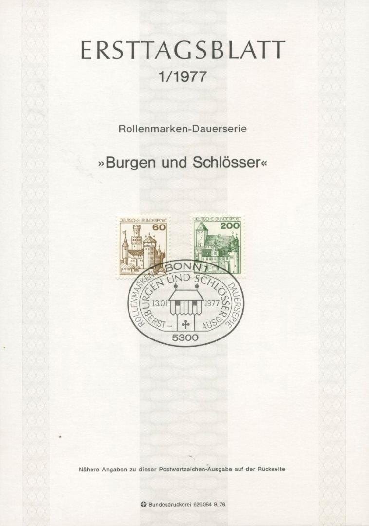 Bund Jahrgang 1977 Ersttagsblätter komplett