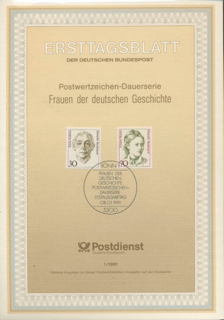 Bund Jahrgang 1991 Ersttagsblätter komplett