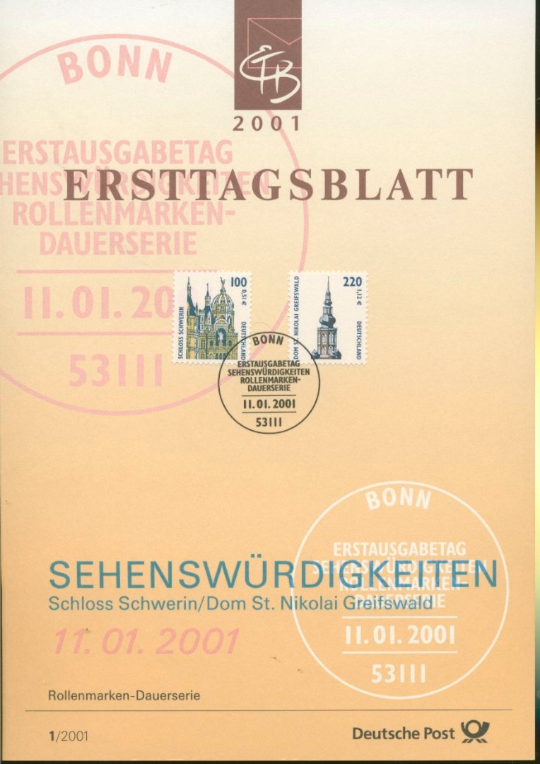 Bund Jahrgang 2001 Ersttagsblätter komplett