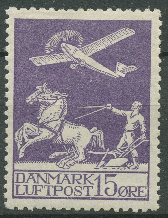 Dänemark 1925 Flugpost Pflügender Bauer Flugzeug 144 mit Falz