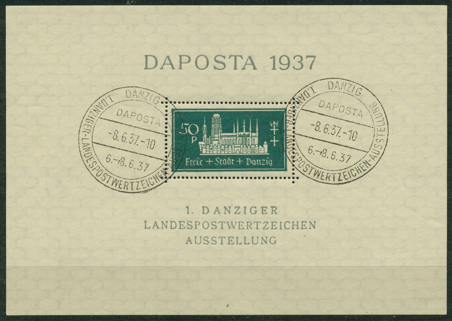 Danzig 1937 Landespostwertzeichen-Ausstellung DAPOSTA Block 1 b gestempelt