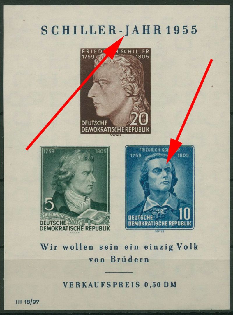 Plattenfehler Block 12 XII PF IV c: J von JAHR bei Blockinschrift mit vorgezogenem Fußstrich und mit Warze über der rechten Augenbraue
