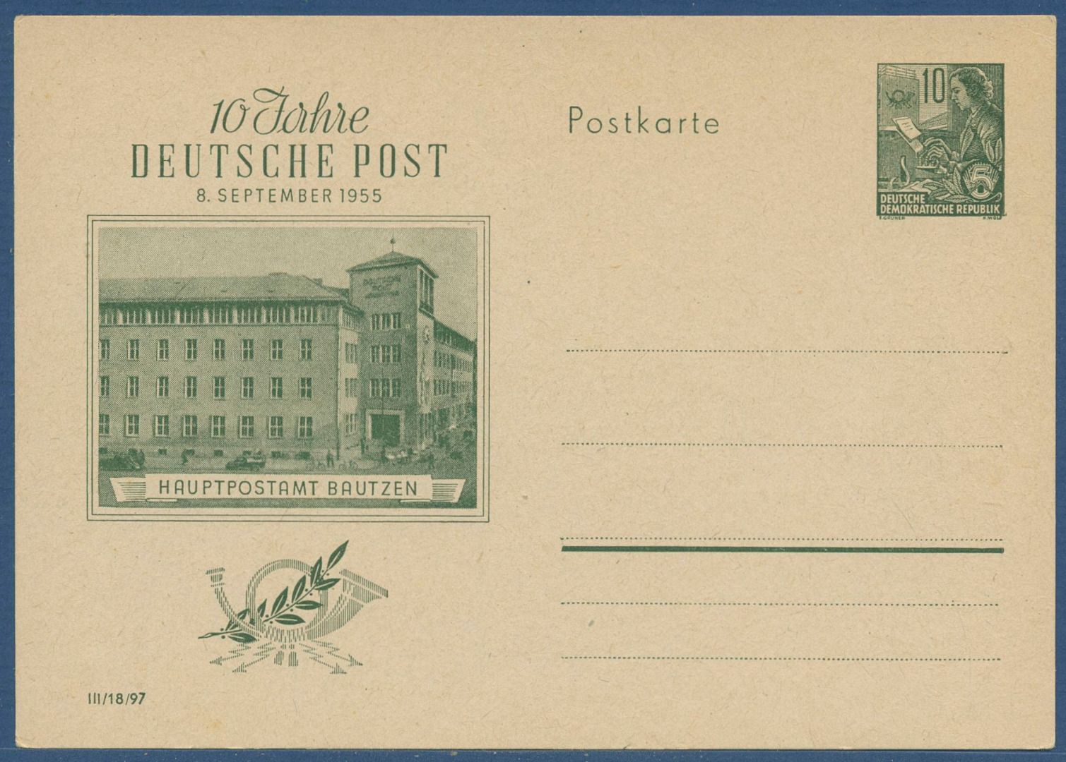 DDR 1955 Fünfjahrplan Sonderpostkarte 10 J. Dt. Post P 66 ungebraucht (X41615)