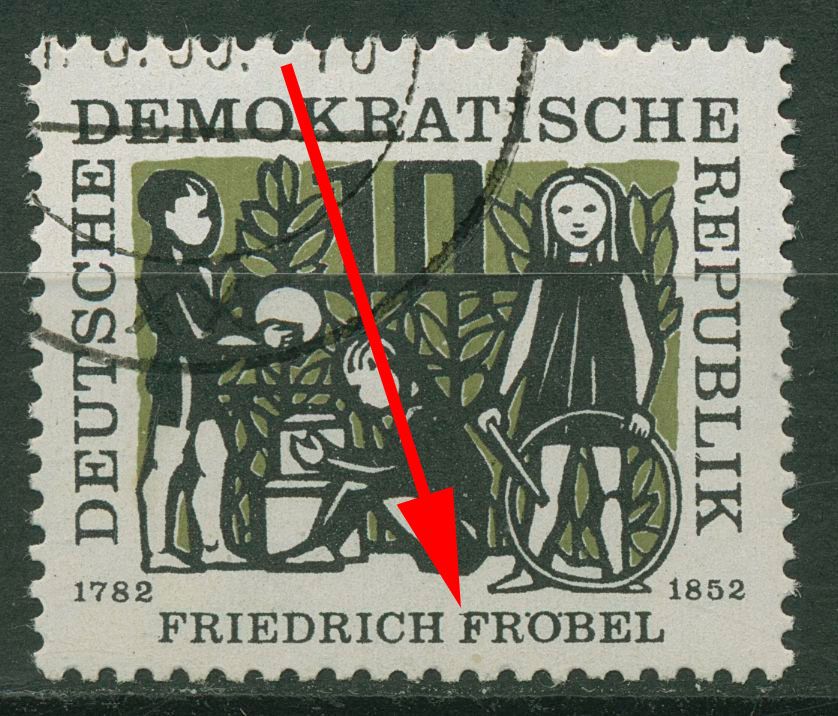 Plattenfehler 564 F 8: F von FRÖBEL links oben beschädigt