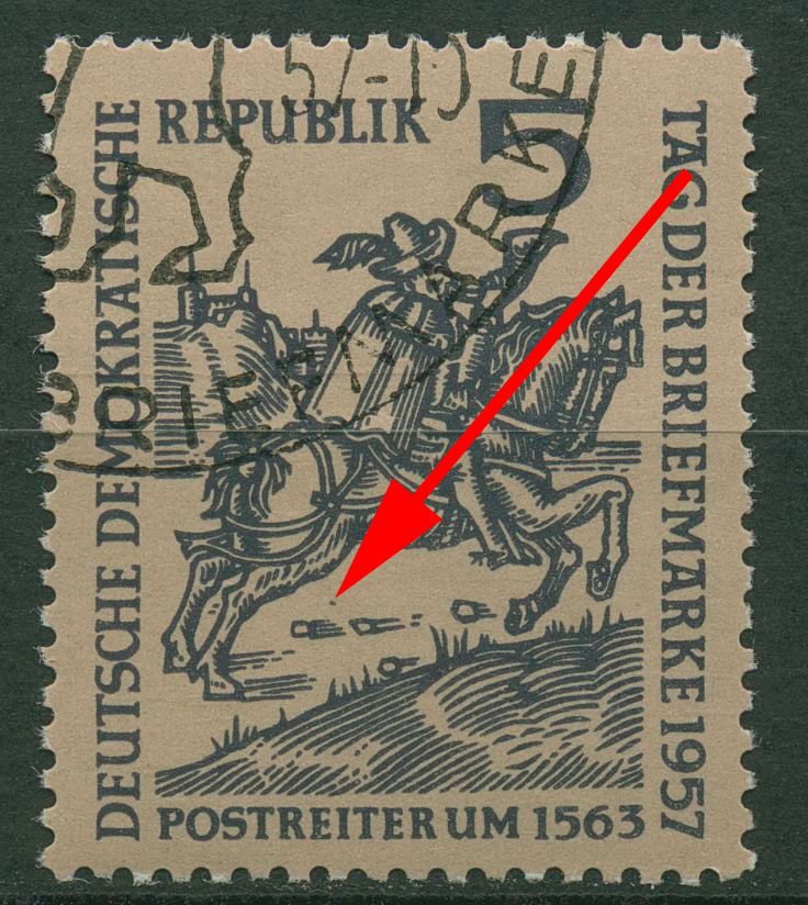 Plattenfehler 600 F 10: Punkt links unter dem Pferdebauch