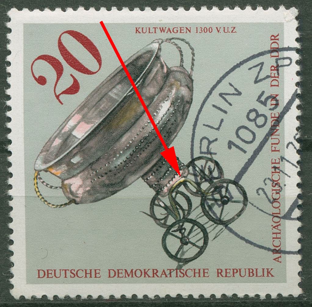 Plattenfehler 2183 F 3: helle Verdickung rechts oben an der vorderen Radhalterung