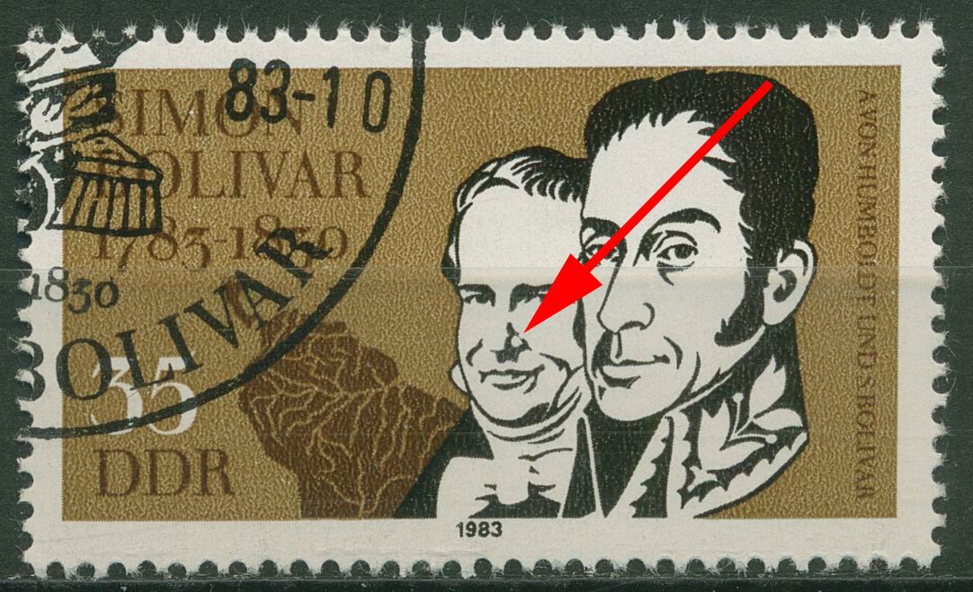 Plattenfehler 2816 F 7: Einkerbung in der rechten Nasenflügellinie von Humboldt