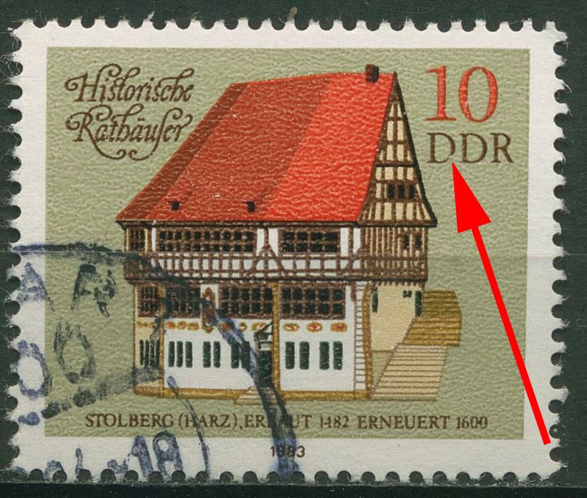 Plattenfehler 2775 F 22: erstes D von DDR rechts unten gebrochen