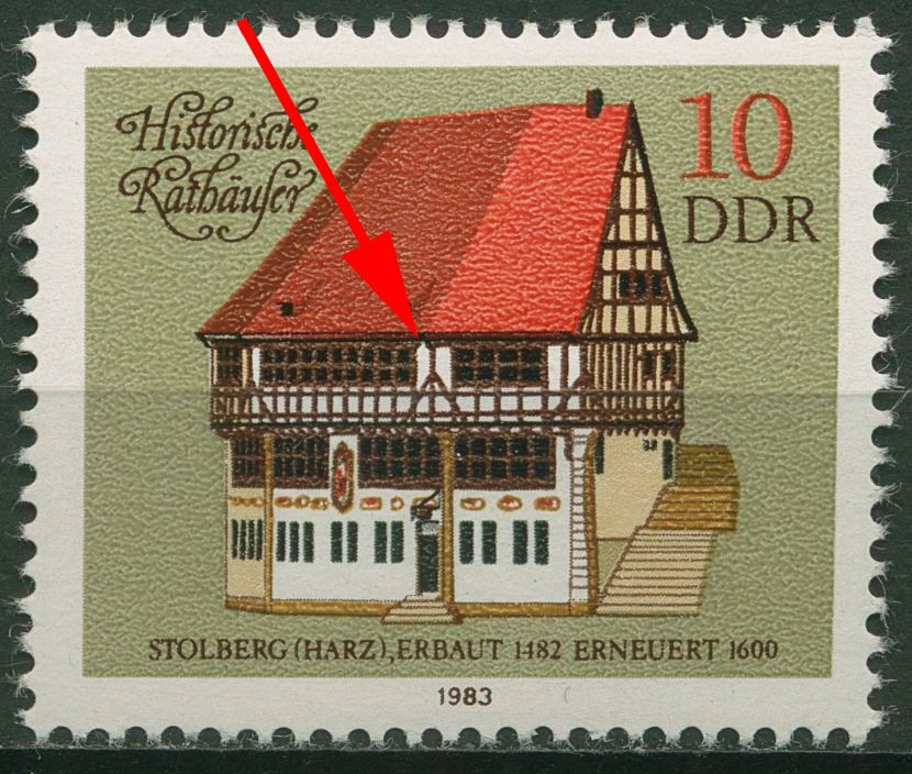 Plattenfehler 2775 F 25: beschädigtes Fachwerk an der Dachkante rechts vom rechten Dachfenster