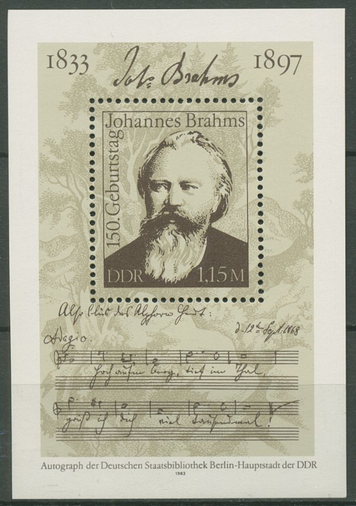 DDR 1983 Komponist Johannes Brahms Block 69 postfrisch (C96845)