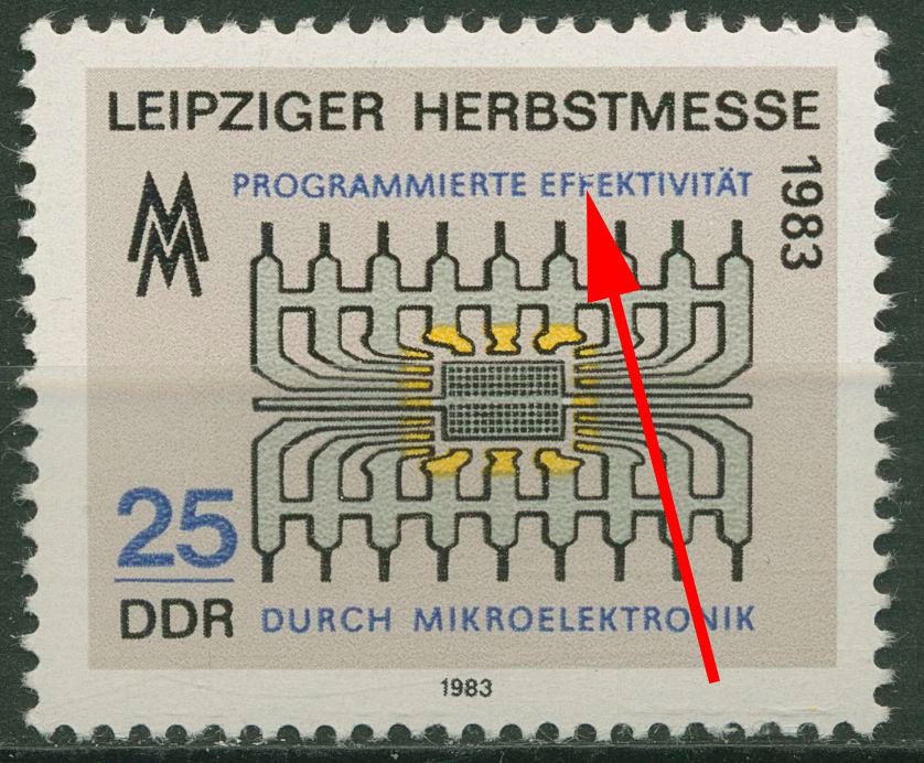 Plattenfehler 2823 F 16: oberer Querstrich des zweiten F in EFFEKTIVITÄT verdünnt