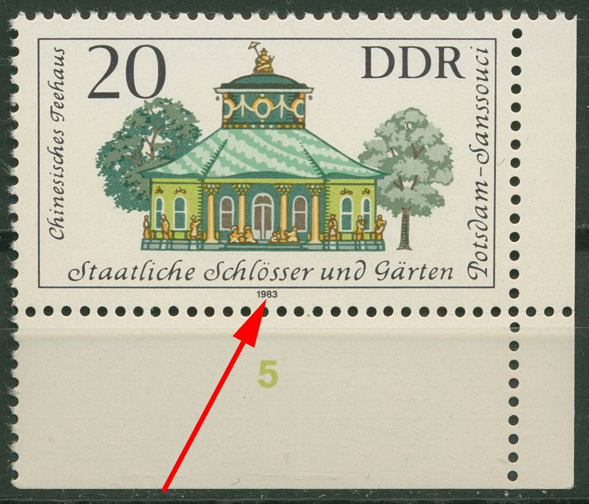 Plattenfehler 2827 F 50: 8 von 1983 unten links eingekerbt