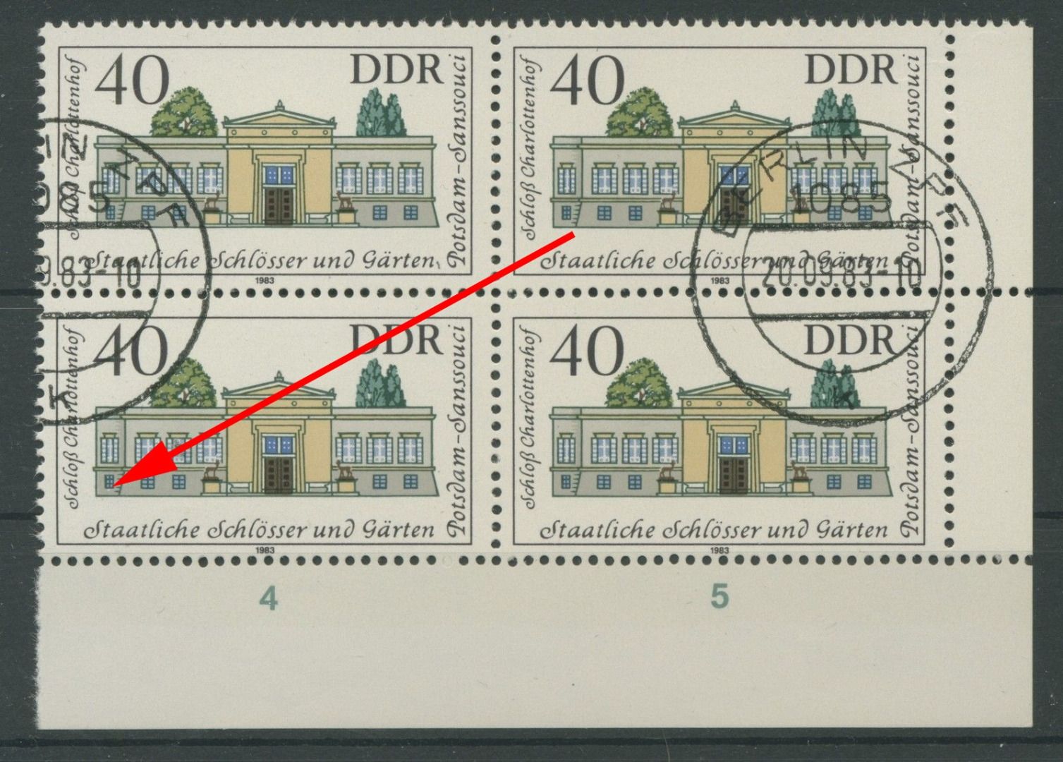 Plattenfehler 2828 f 49: weißer Fleck unter linkem Fenster