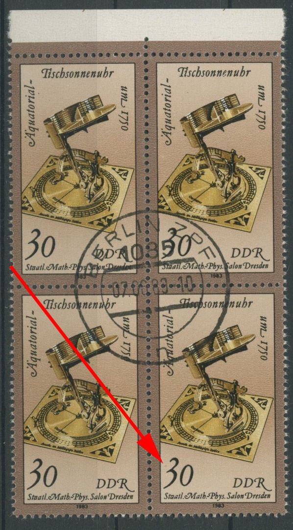 Plattenfehler 2799 F 18 4er-Block: brauner Fleck vor der Wertziffer