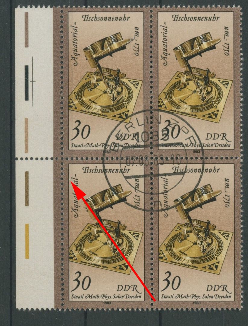 Plattenfehler 2799 F 31 4er-Block: weißer Punkt links neben al von Äquatorial