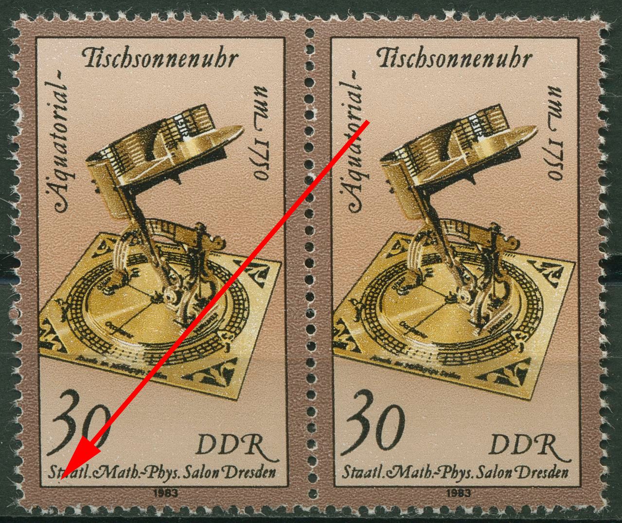 Plattenfehler 2799 F 38: schwarzer Punkt unter dem ersten t von Staatl...