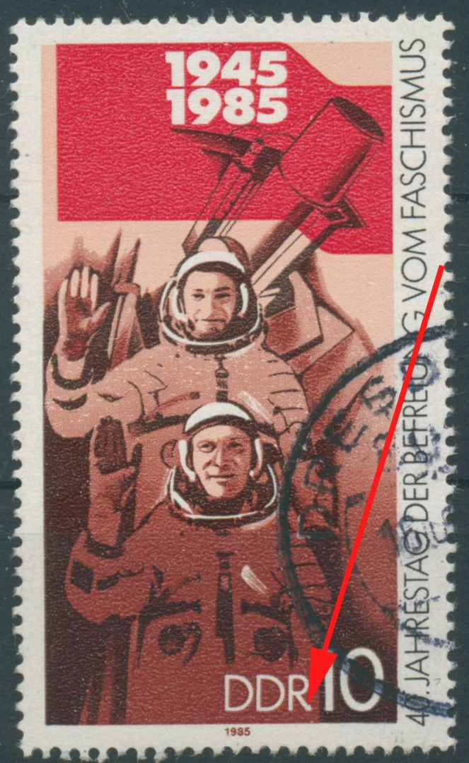 DDR 1985 Befreiung vom Faschismus mit Plattenfehler 2941 f 24: Abstrich des R von DDR verdickt, gestempelt (R10077)