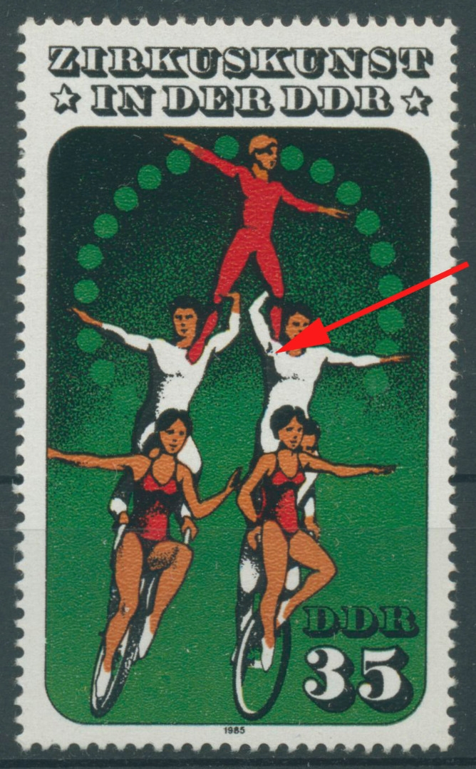 DDR 1985 Zirkuskunst der DDR mit Plattenfehler 2985 f 5: Bruch des Schattens im Oberarm, postfrisch (R10090)