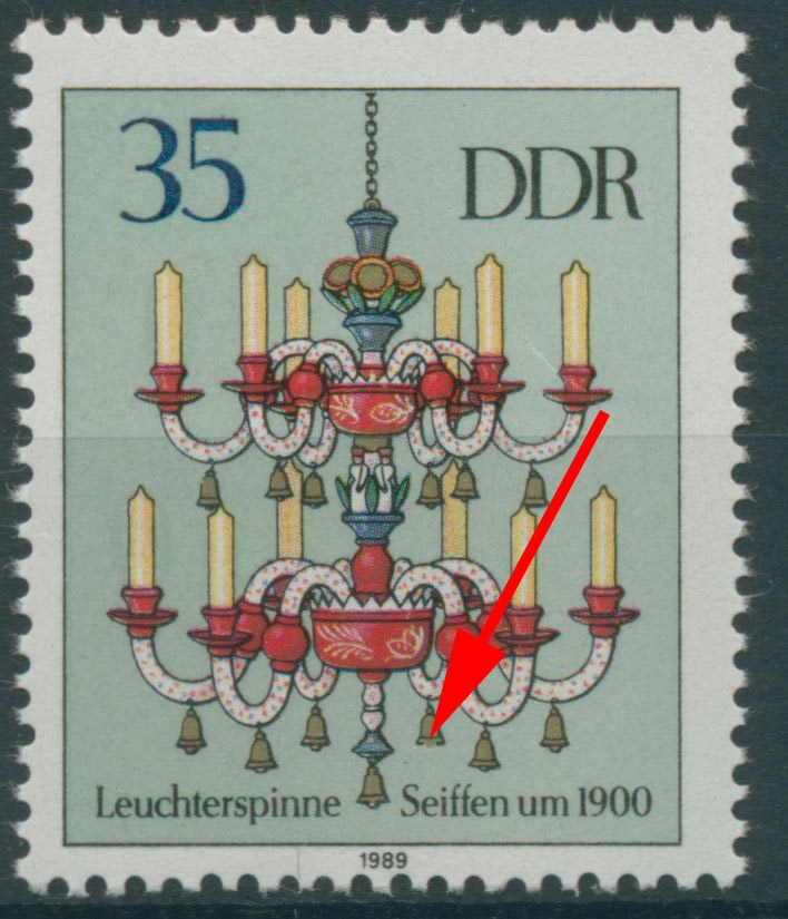 DDR 1989 Erzg. Leuchterspinnen mit Plattenfehler 3292 I: Rand der Glocke unten unterbrochen, siehe Richter-Katalog postfrisch (R7925)