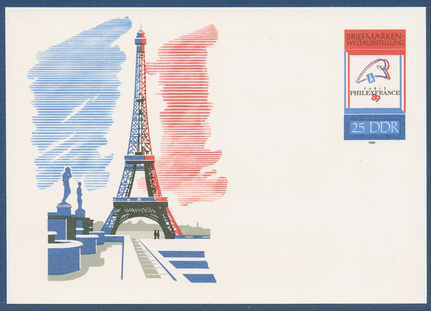 DDR 1989 PHILEXFRANCE Paris Sonderpostkarte P 102 ungebraucht (X40996)