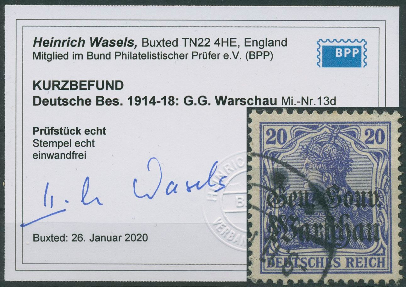 Deutsche Post in Polen 1916/17 Germania mit Aufdruck 13 d gestempelt geprüft