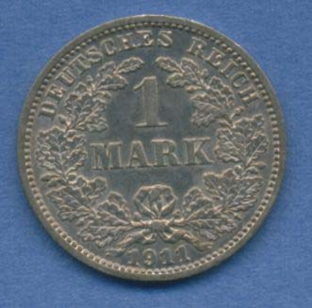 Deutsches Kaiserreich 1 Mark Kursmünze 1911 J, J 17, vorzüglich/Stempelglanz
