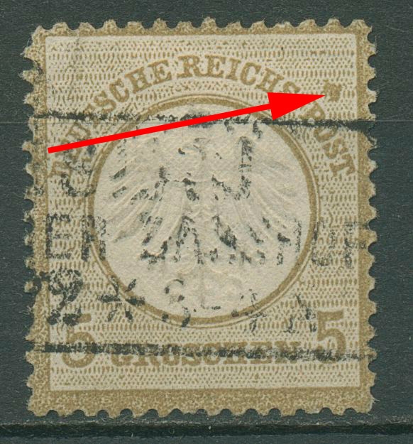 Druckzufälligkeit oder Plattenfehler 6 PF ?: großer Farbpunkt rechts oberhalb von P von POST