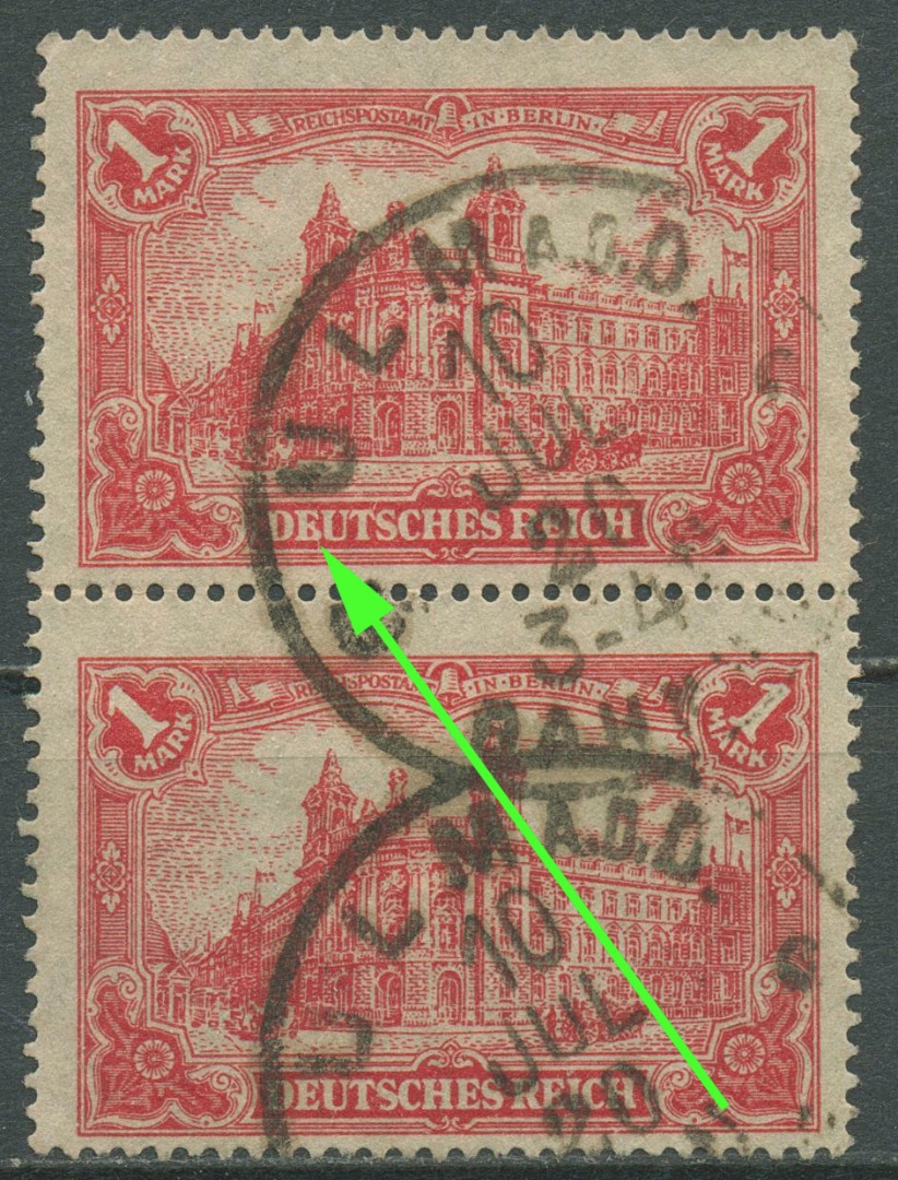 Plattenfehler A113 IV: untere Hälfte des ersten E in DEUTSCHES bogenförmig geschlossen, Paar mit Vergleichsstück