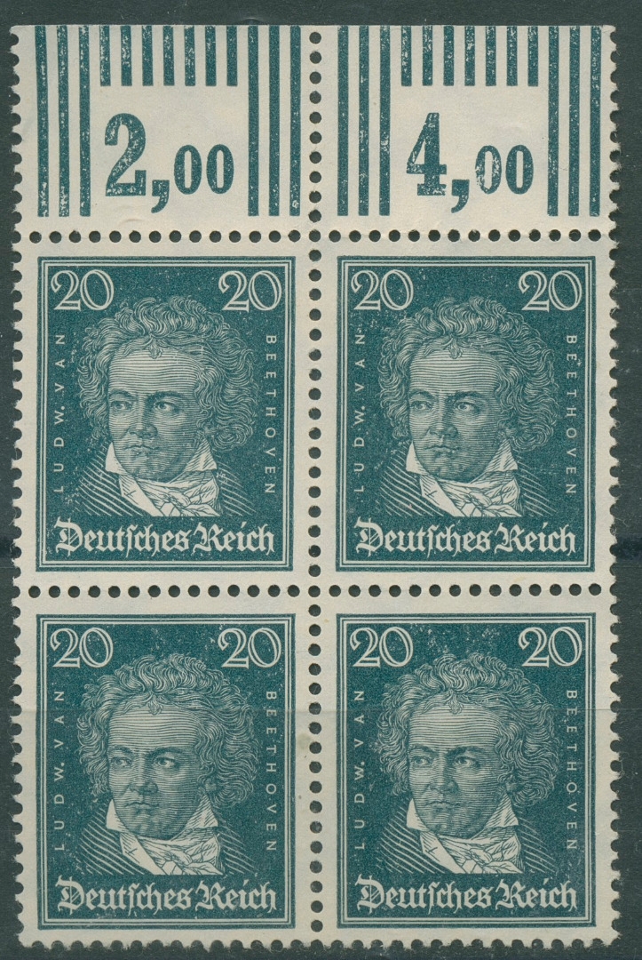 Deutsches Reich 1926 Ber. Deutsche 392 4er-Block WOR ohne Gummierung (R17294)