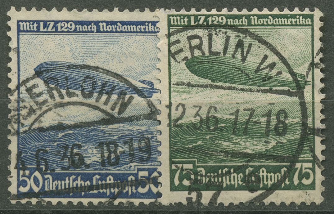 Deutsches Reich 1936 Luftschiff Hindenburg 606/07 X mit TOP-Stempel