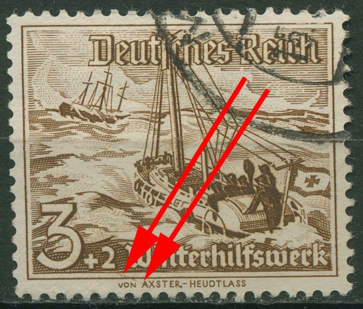 Plattenfehler 651 PF I: Strich von der 2 bis A von Axster im Unterrand, aus Markenhefchtenbogen