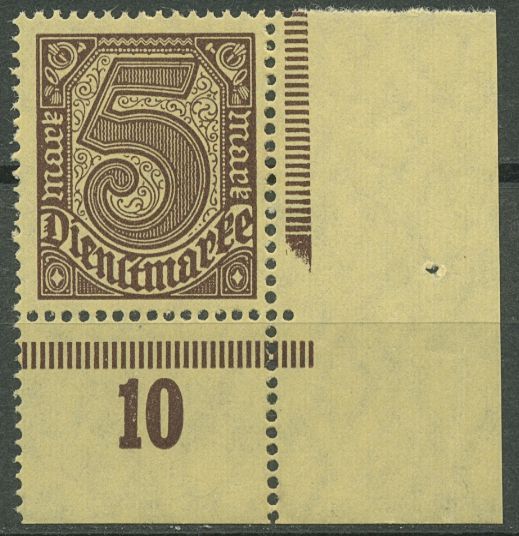 Deutsches Reich Dienstmarke 1920 Plattendruck D 33 a P UR Ecke 4 postfrisch