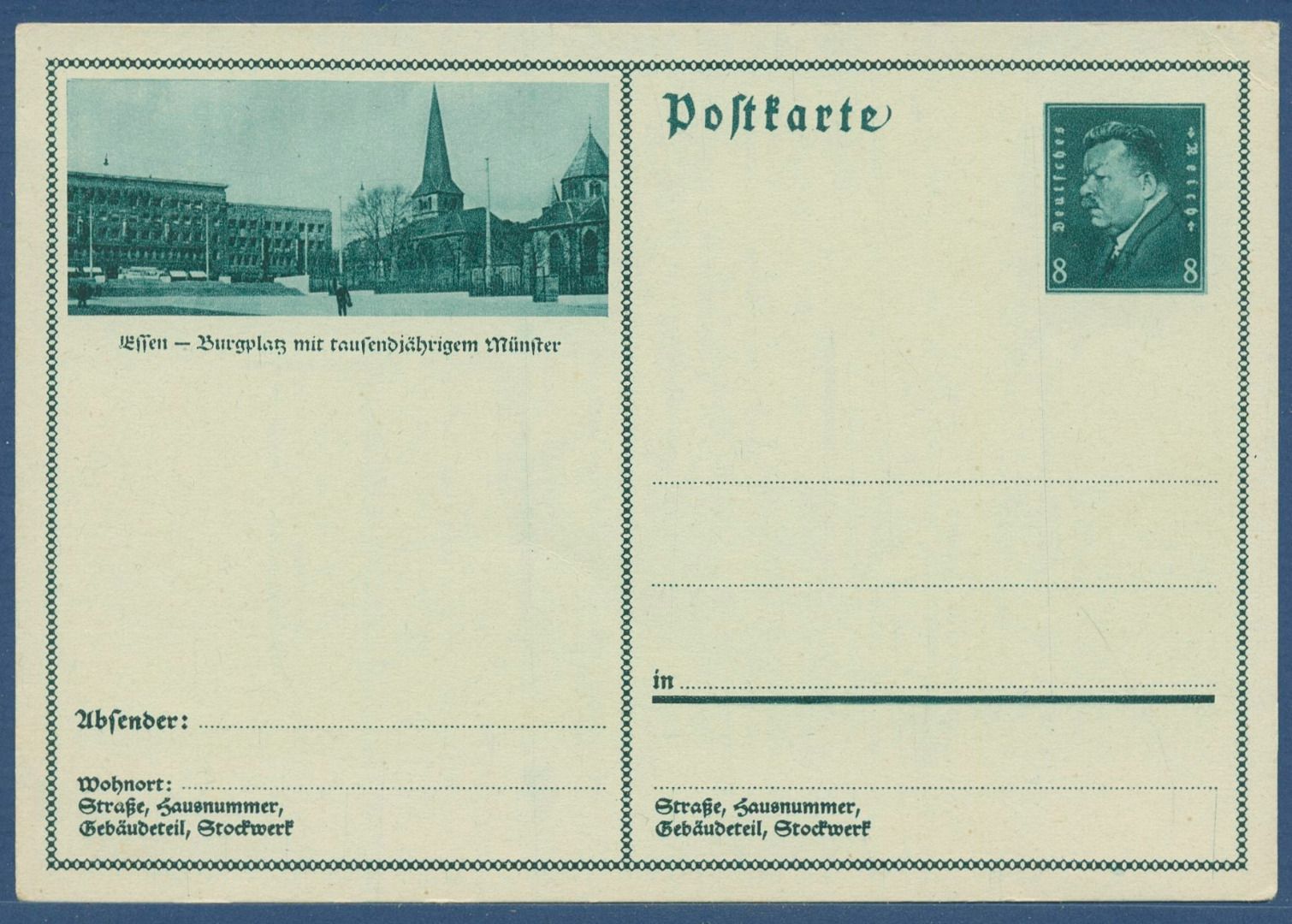 Dt. Reich 1931 Bildpostkarte Essen Burgplatz P 191 /06 ungebraucht (X41413)