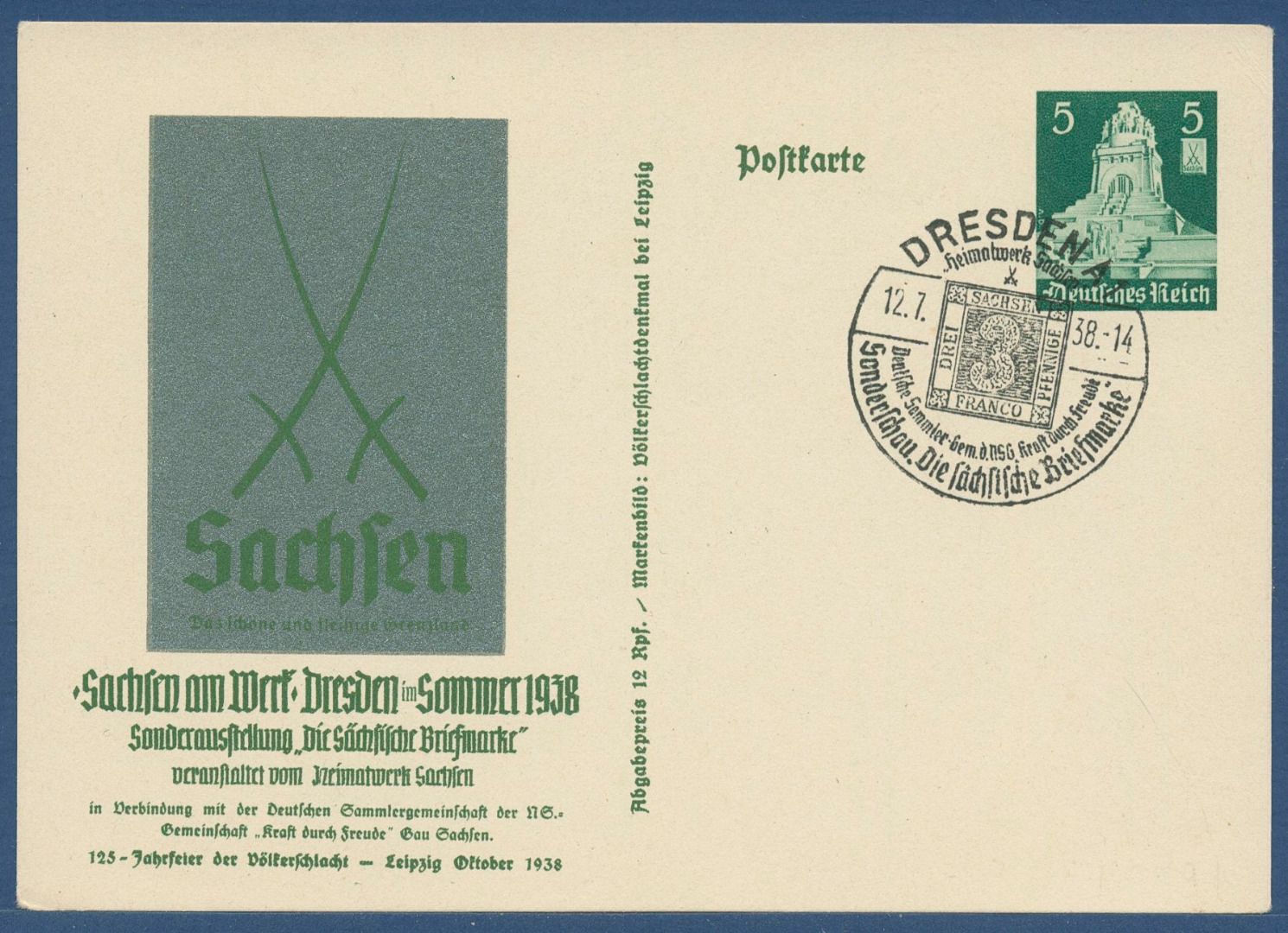 Dt. Reich 1938 125 J. Völkerschlacht Sonderpostkarte P 269 SST (X40913)