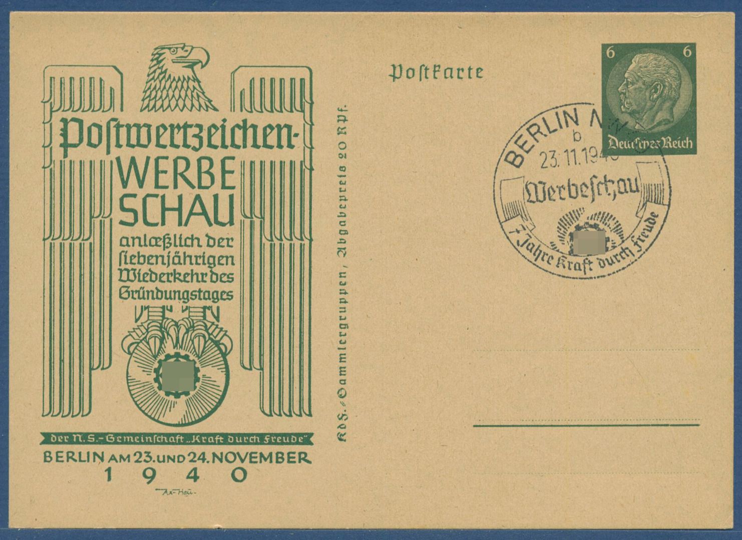 Dt. Reich 1940 Werbeschau Privatpostkarte PP 127C52 SST (X41385)