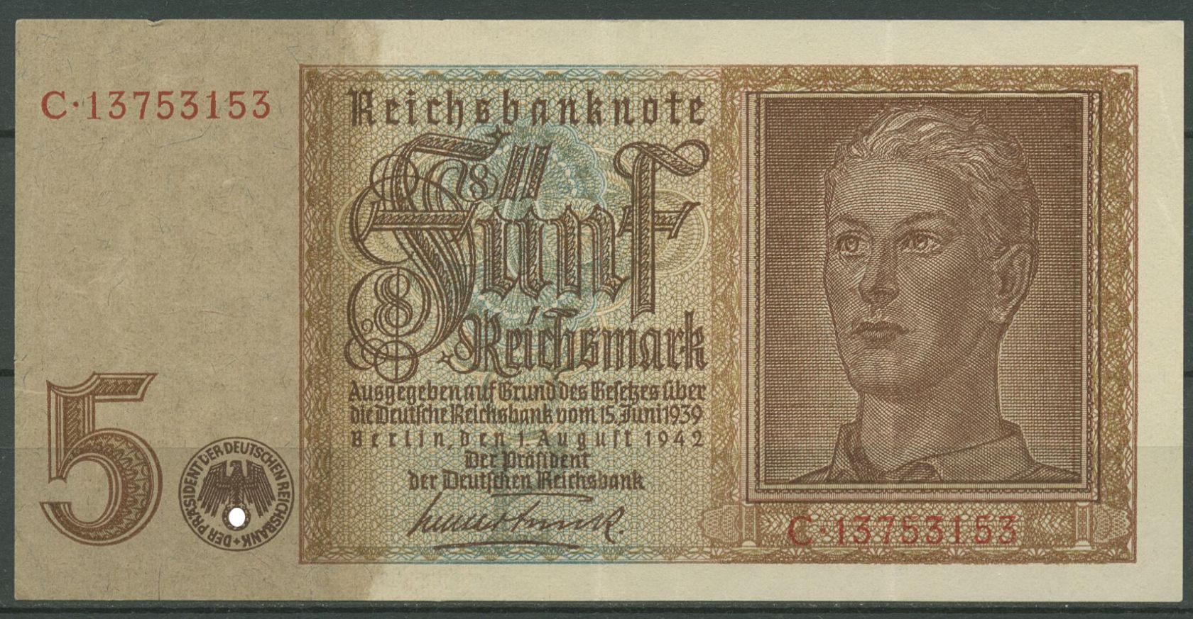Dt. Reich 5 Reichsmark 1942, Braunschweig Dom, Ro 179 b Serie C gebraucht (K987)