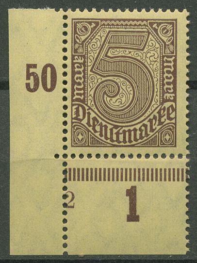 Dt. Reich Dienstmarke 1920 mit Form-Nr. D 33 a P UR Ecke 3 Form-Nr. 2 postfrisch