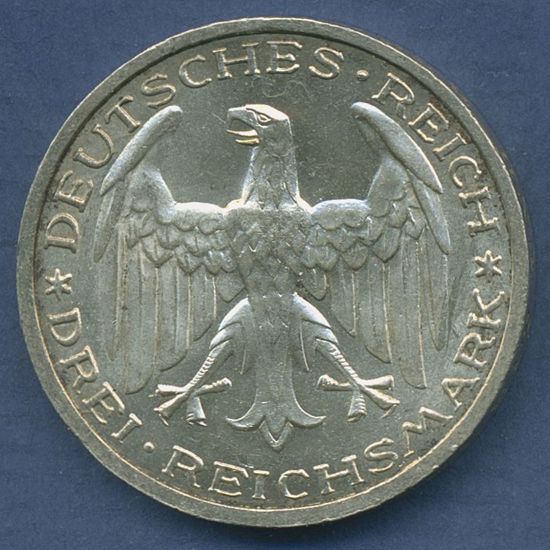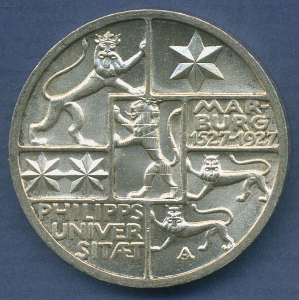 Dt. Reich Weimar 3 Mark 1927 A, Philippsuniversität Marburg J 330, vz/st (m6884)
