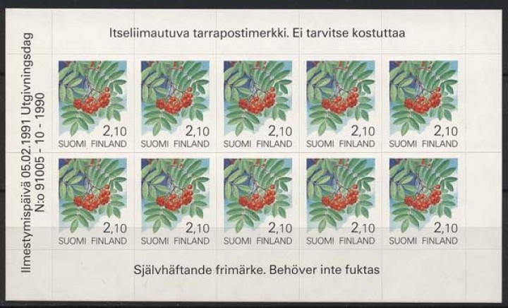 Finnland 1991 Freimarken Pflanzen Eberesche Folienblatt 1129 FB postfr.(C92941)