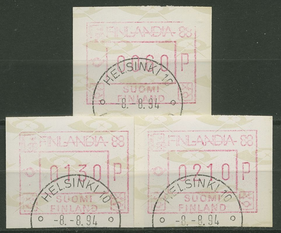 Finnland ATM 1988 FINLANDIA '88 Satz 60/130/210, ATM 4.1 S gestempelt