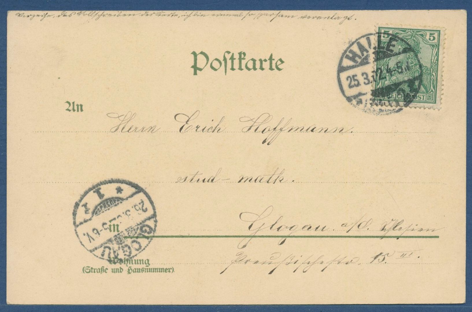 Fröhliche Ostern Familie Hase mit Kiepen unterwegs, gelaufen 1902 (AK5603)