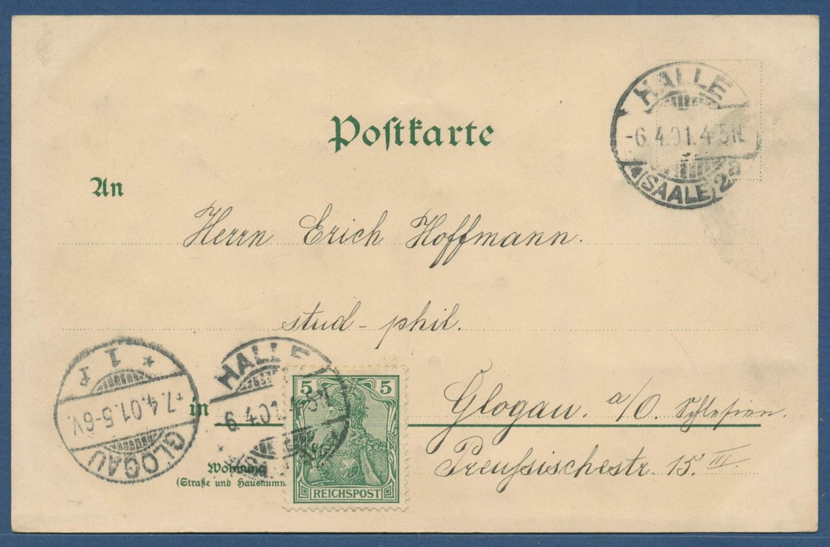 Fröhliche Ostern Mädchen mit Osterhasen im Korb, gelaufen 1901 (AK5607)