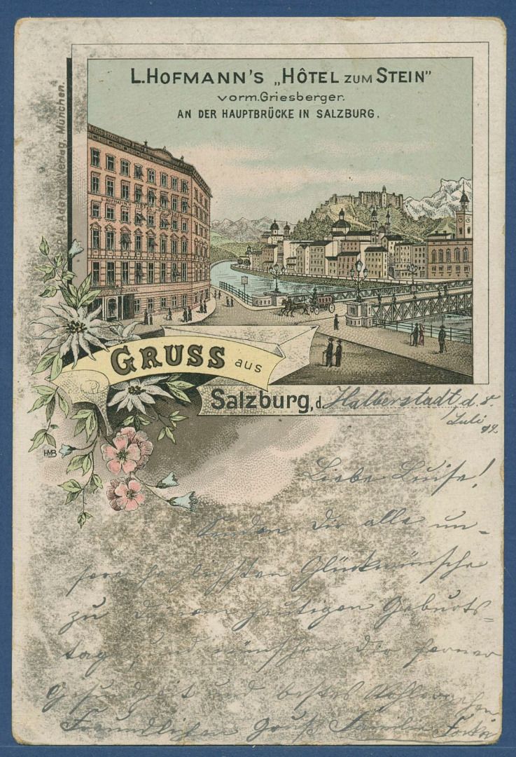 Gruss aus Salzburg Hotel zum Stein, gelaufen 1899 Marke fehlt (AK5644)