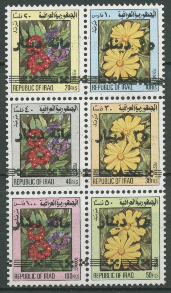 Irak 1996 Freimarken Blumen mit Aufdruck 1564/69 ZD postfrisch