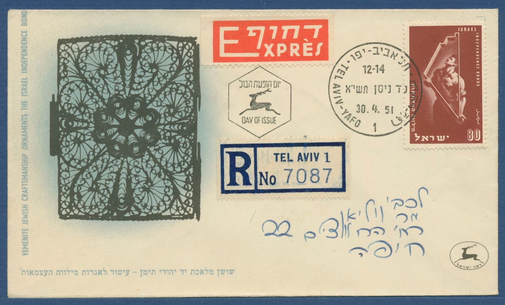 Israel 1951 Vergabe der Unabhängigkeitanleihe 56 Ersttagsbrief FDC (X40541)