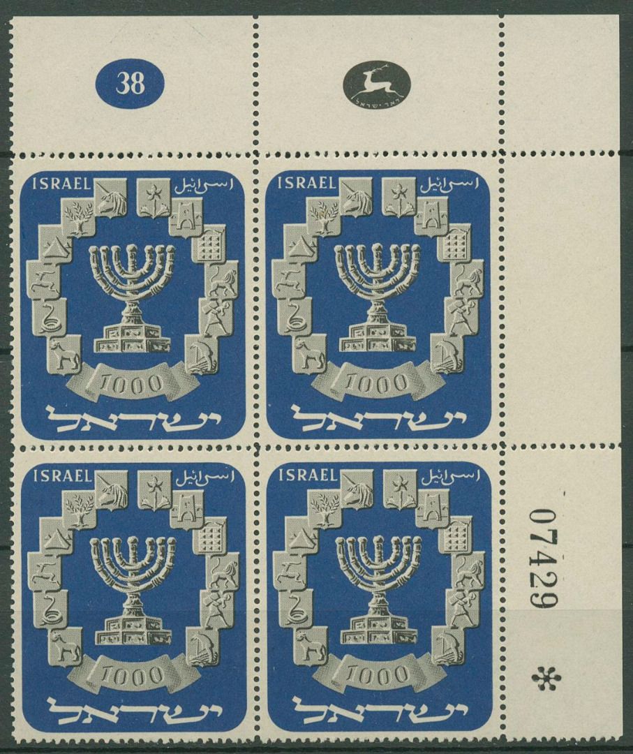 Israel 1952 Wappen Siebenarmiger Leuchter 66 Plattenblock postfrisch (C40046)