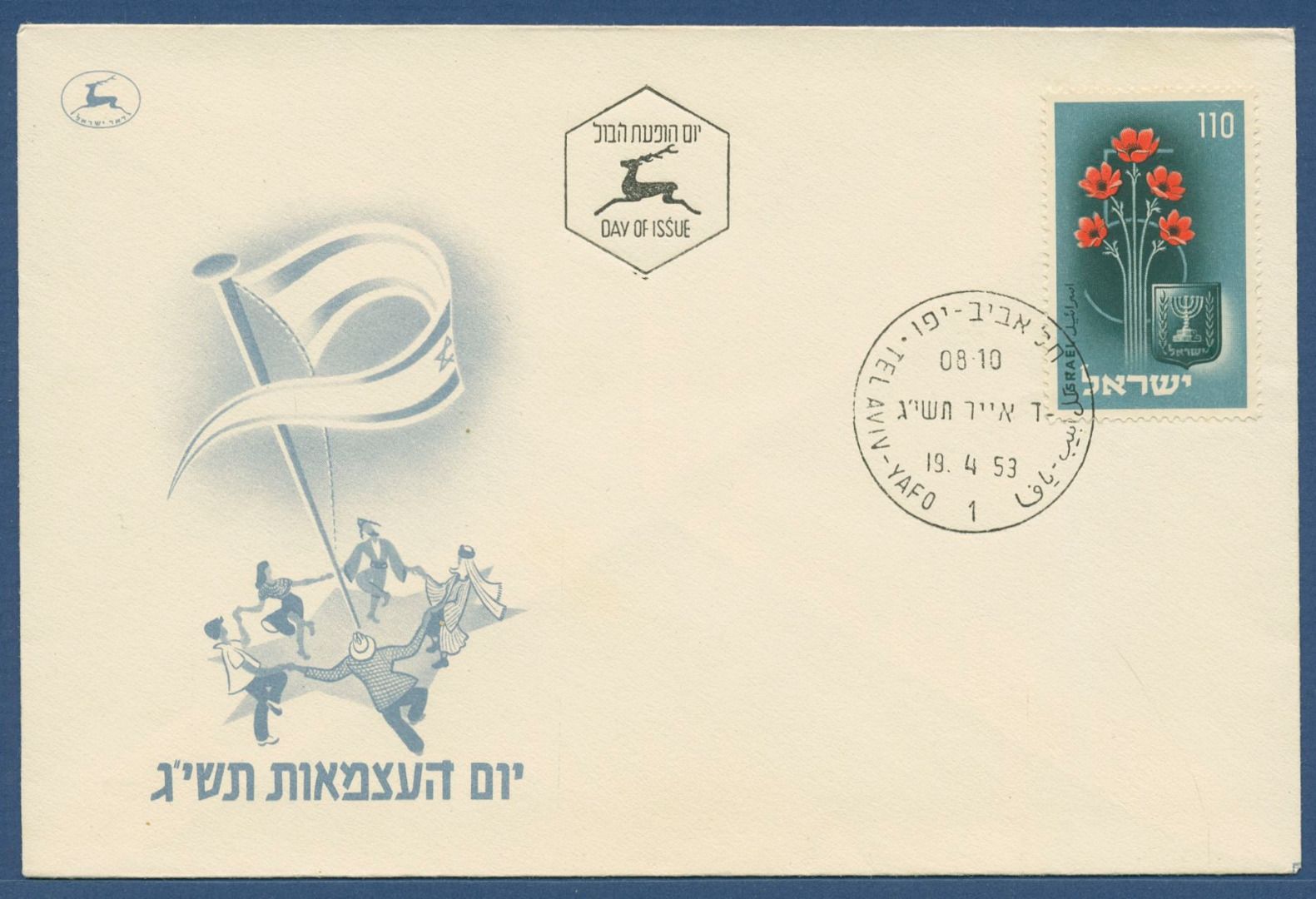 Israel 1953 5 Jahre Unabhängigkeit Anemonen Blumen 87 Ersttagsbrief FDC (X40553)