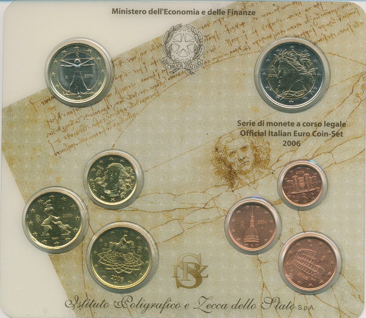 Italien KMS 2006 Leonardo da Vinci 1 Cent - 2 Euro im Originalfolder, st (m5277)